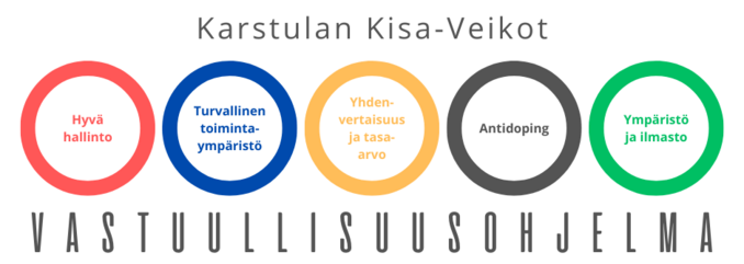Karstulan Kisa-Veikkojen hallitus on sitoutunut vastuullisuuden edistämiseen seuratyössä. Noudatamme toiminnassamme Voimisteluliiton Voimistelun eettisiä periaatteita sekä Olympiakomitean eettisiä reilun pelin periaatteita.